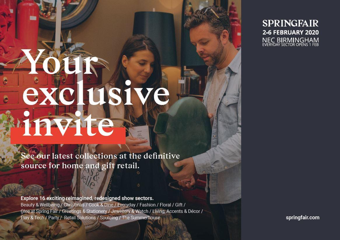 This is your invite to join us as our VIP guest for Spring Fair 2020, 2nd - 6th February 2020, at the NEC Birmingham.
